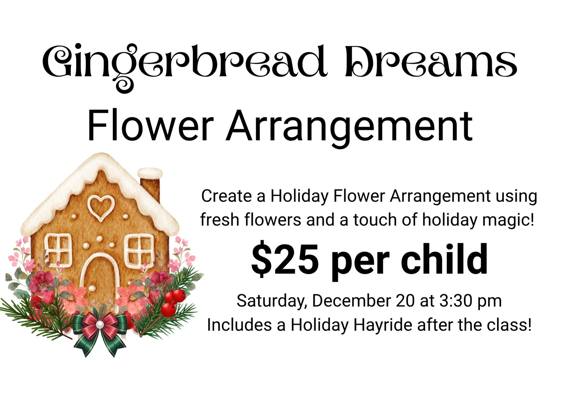 Kids will create a Holiday Flower Arrangement using fresh flowers and a touch of holiday magic! Includes Holiday Hayride after class!